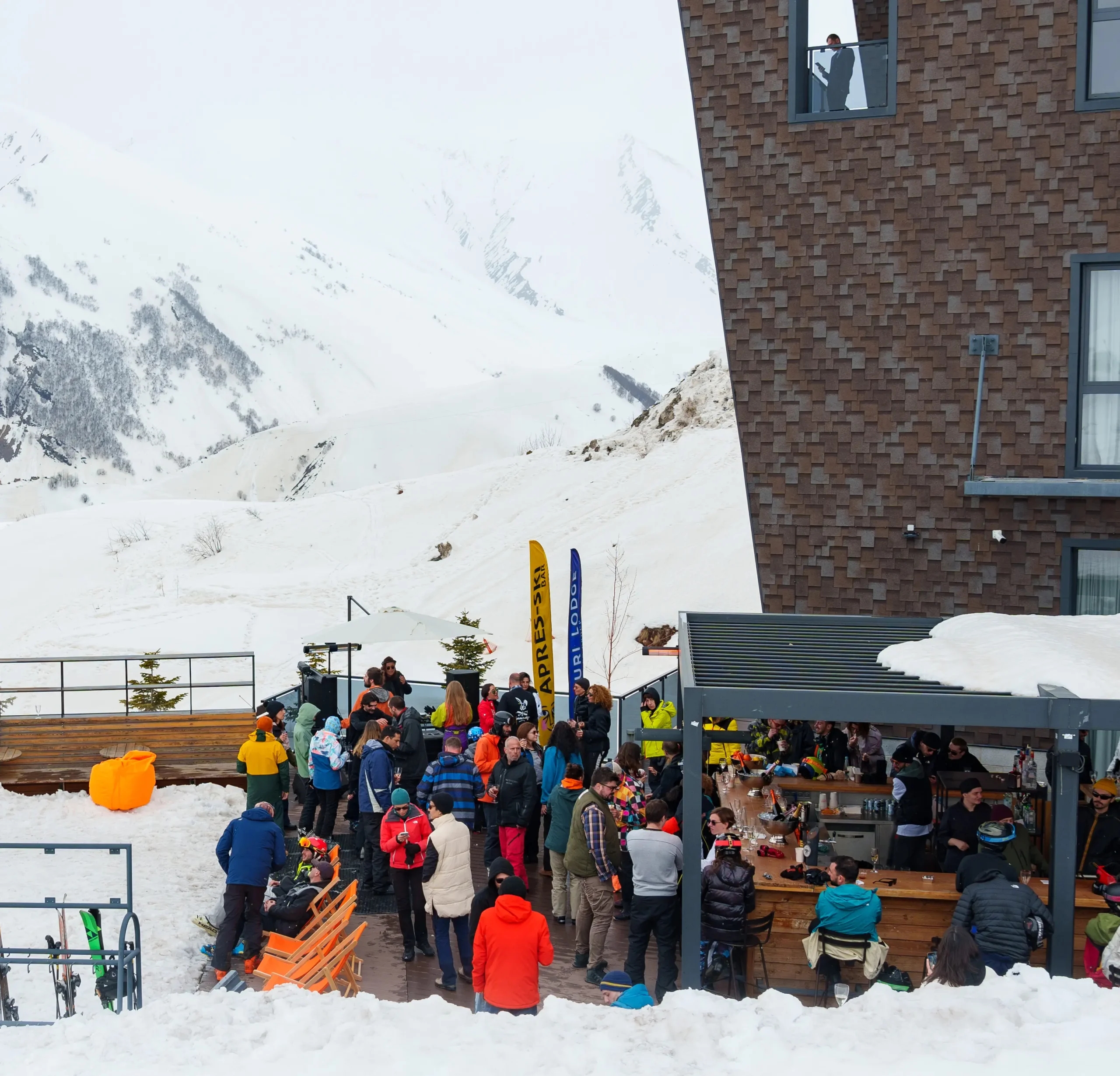 Framed by snow-covered peaks, our Après-Ski Bar is the heart of Gudauri’s après-ski scene. Step off the slopes and into an evening of cocktails, music, and mountain views — the perfect way to unwind as the sun sets over the Caucasus.
