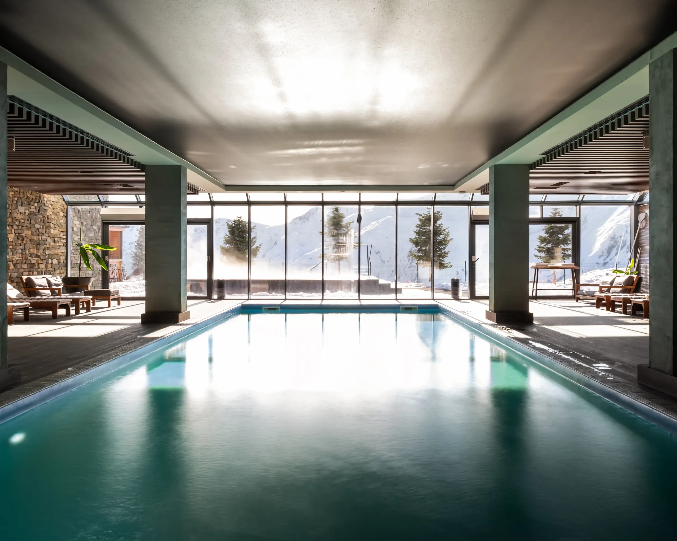 Unwind between swims or spa sessions with light snacks, fresh juices, and cocktails served poolside. Surrounded by mountain views and soft natural light, the Pool Bar brings a sense of calm indulgence to your wellness experience.
