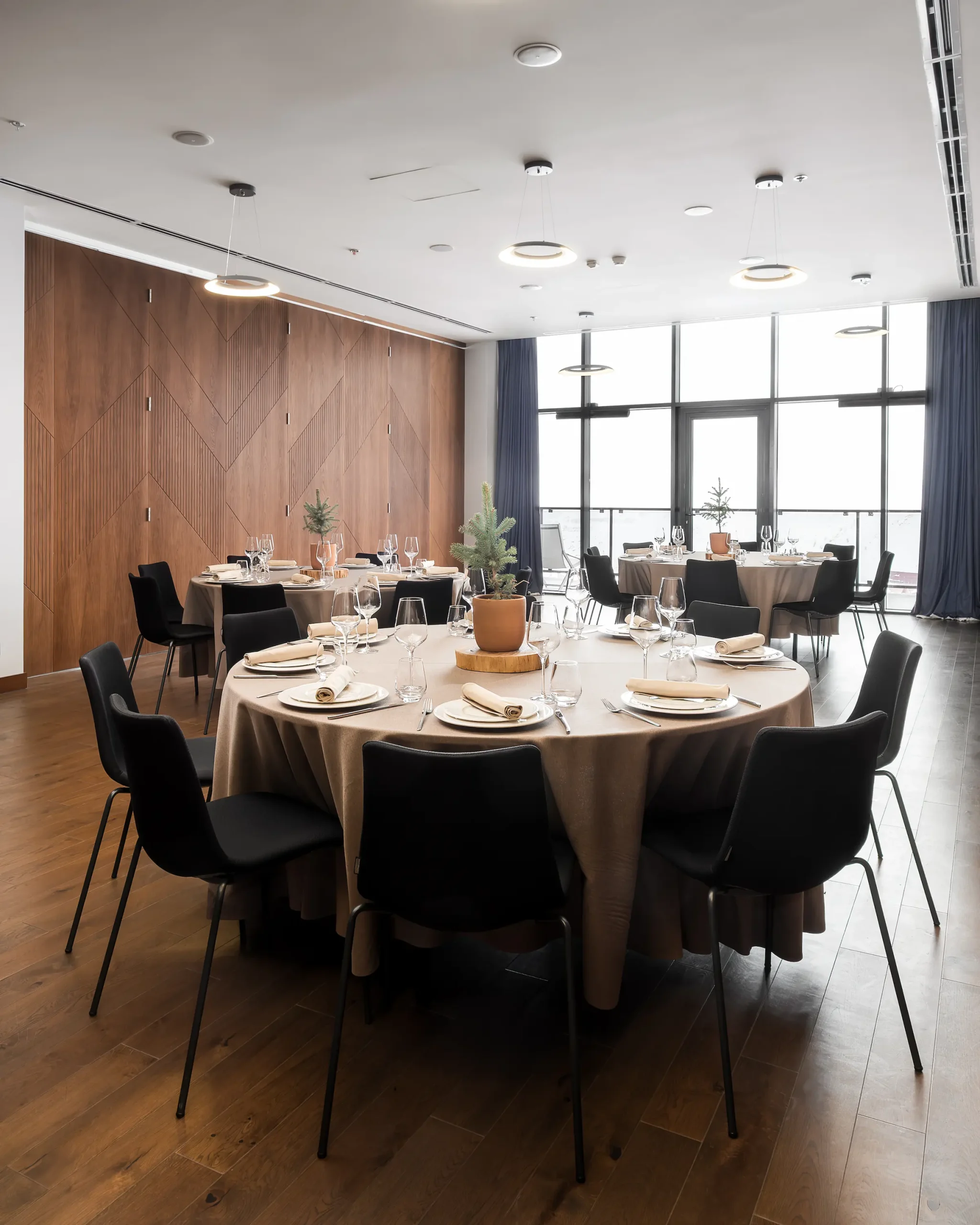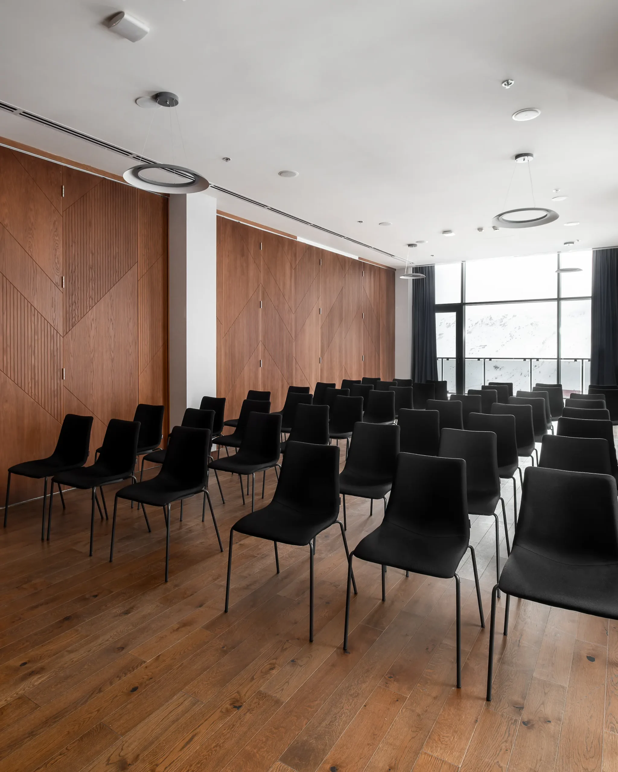 The spacious pre-function area serves as a natural meeting point for coffee breaks, guest registration, or informal networking. Filled with daylight and overlooking the mountains, it provides a comfortable, well-organized space that enhances the flow of any event.