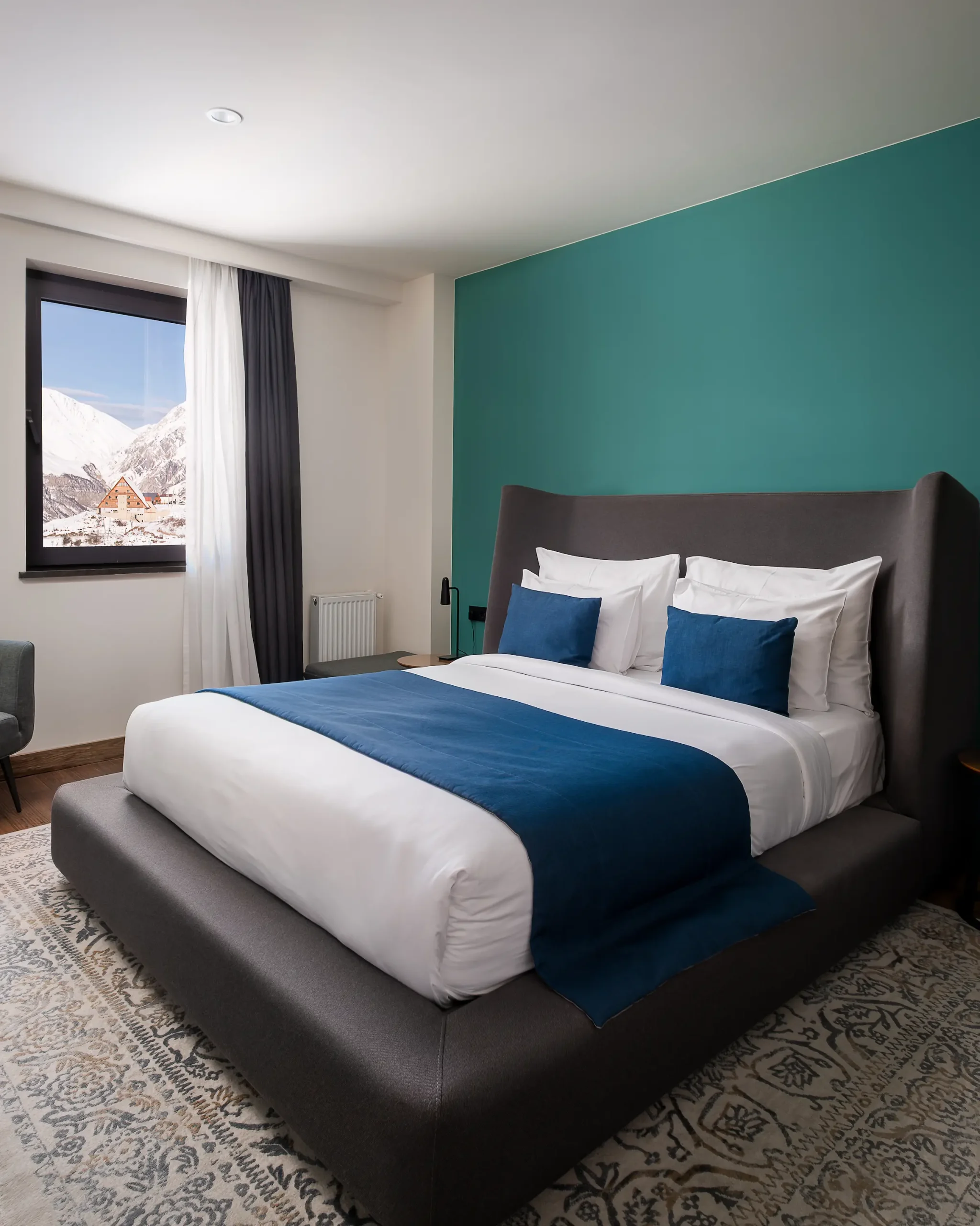 Gudauri Lodge offers 121 rooms and suites across five categories, each designed to strike a balance between comfort, style, and mountain character. From intimate doubles to spacious suites, every room combines thoughtful details with contemporary design, creating a sense of calm after a day in the outdoors.