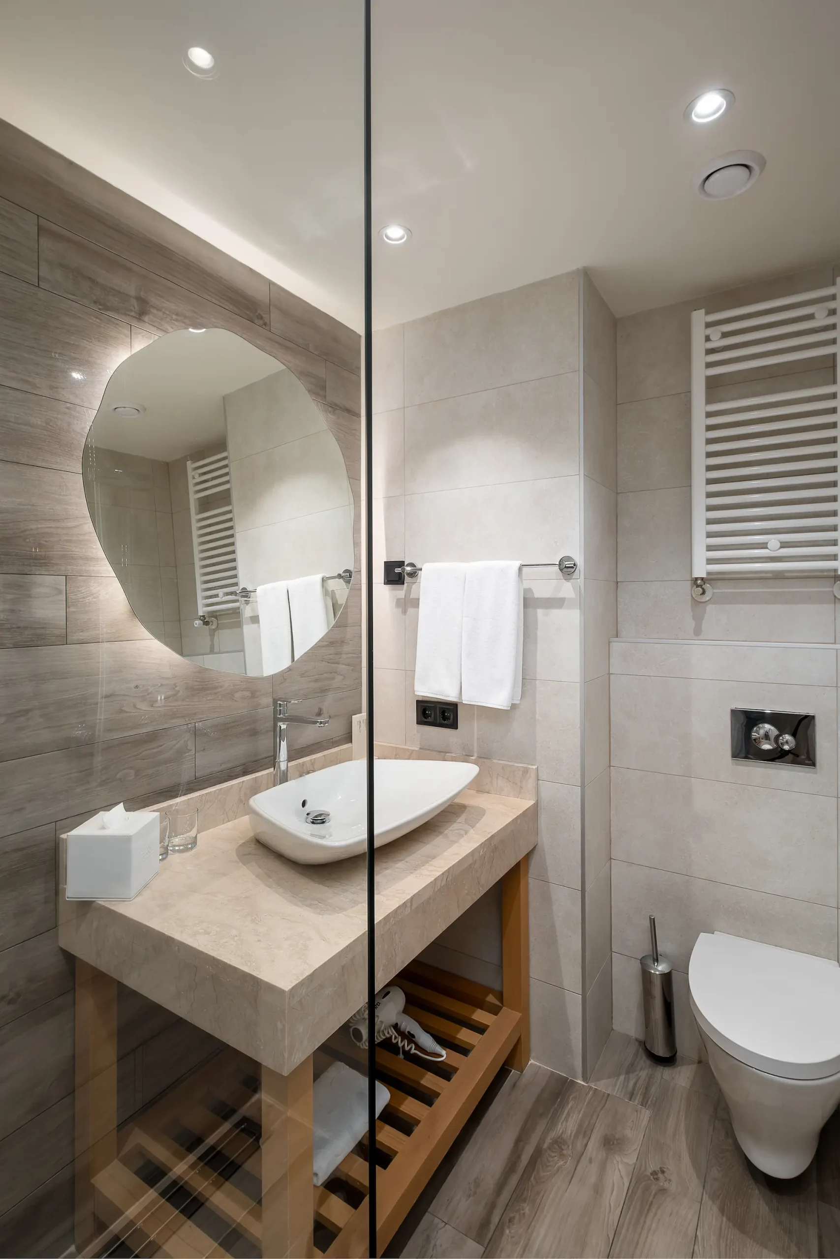 Spanning 115 m² across two levels, our Duplex Suites feature two bedrooms and two bathrooms, offering the ideal setting for a mountain getaway with family or friends. Thoughtfully designed, they combine modern alpine style with the relaxed comfort of a private lodge.